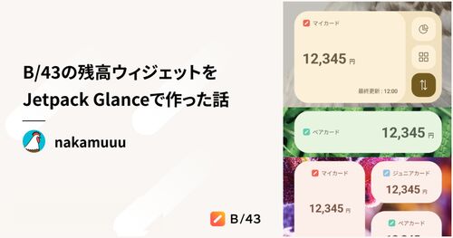こんにちは。株式会社スマートバンクで iOS / Android エンジニアをしている nakamuuu です。 先月公開したAndroid版B/43の最新バージョンでは、カードの残高を表示するウィジェットをご利用いただけるようになりました。アプリを最新のバージョンに更新の上…
