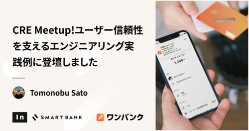 こんにちは、おはようございます、こんばんは、スマートバンクでCRE(Customer Reliability Engineering)チームのエンジニアリングマネージャーをしている佐藤(@tmnbst)です。 3月28日に、株式会社MIXI(みてね)、株式会社ログラス、弊社スマートバンクで…
