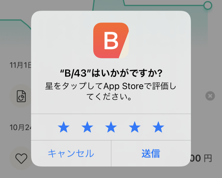 先日リリースした「B/43」のiOSアプリでStoreKitを利用してアプリを評価してもらうためのダイアログを表示する変更を行いました。