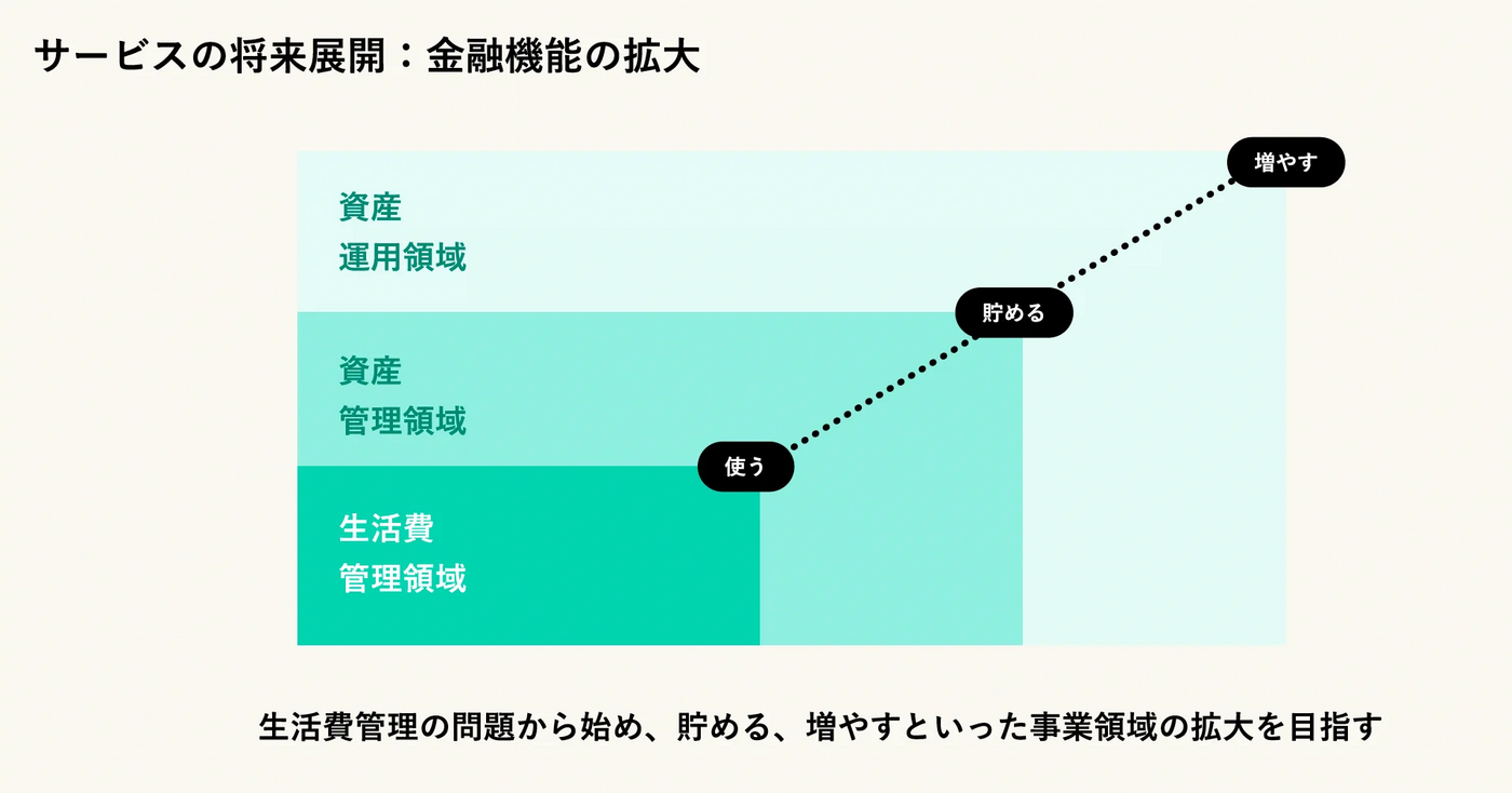 1つ目はユーザーの課題解決です。B/43は現状主に日々の生活費のマネジメントにおける課題解決に注力をしていますが、ユーザーのお金に纏わる困り事は家計管理だけではありません。