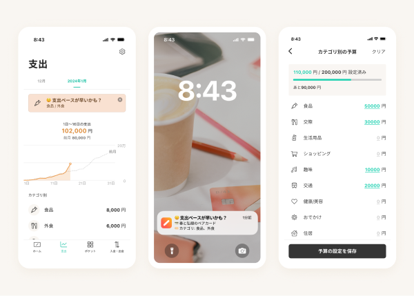 B43は、利用履歴がリアルタイムで確認できる専用アプリと連携し、支出の「見える化」を実現します。カテゴリ別の支出管理や月ごとのサマリー表示により、効率的な家計管理をサポートします。