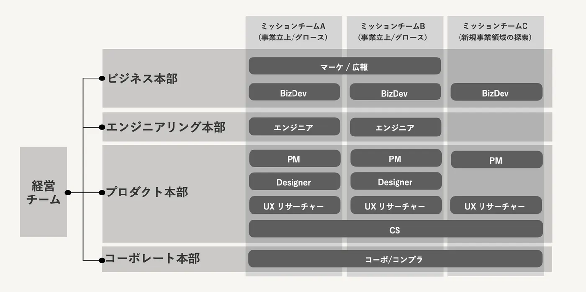 また、ミッションチームが並列で施策を実装する上で特定の施策が他のミッションチームに影響を与える可能性があります。 モバイルアプリ部が異なるドメインを担当するミッションチームの接合点としてアプリ全体の体験を俯瞰して見ながら調整する役割を担える体制をつくります。
