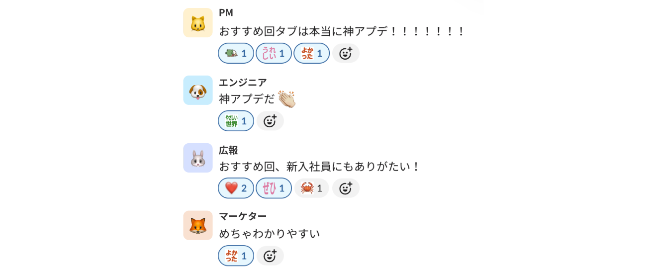 社内に共有したところ、特に「おすすめ回」に対してコメントをいただき、めちゃくちゃありがたかったです。