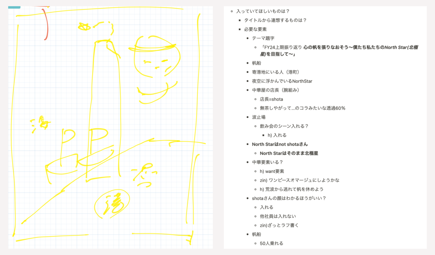 「会社の目指している方向性を再確認し、お互いがどんなことを考えながら日々活動しているのかを見つめ直す場にしよう。皆が一度船を降りて語り合い、そして次の日からまた同じ方向を目指して前に進んでけるような会にする」という思いを込めた「心の帆を張りなおそう〜僕たち私たちのNorth Star(北極星)を目指して〜」をテーマとして掲げることとしました。 少し漫画っぽすぎるタイトルかもしれませんが、キャッチーで印象に残るタイトルになったと感じています。